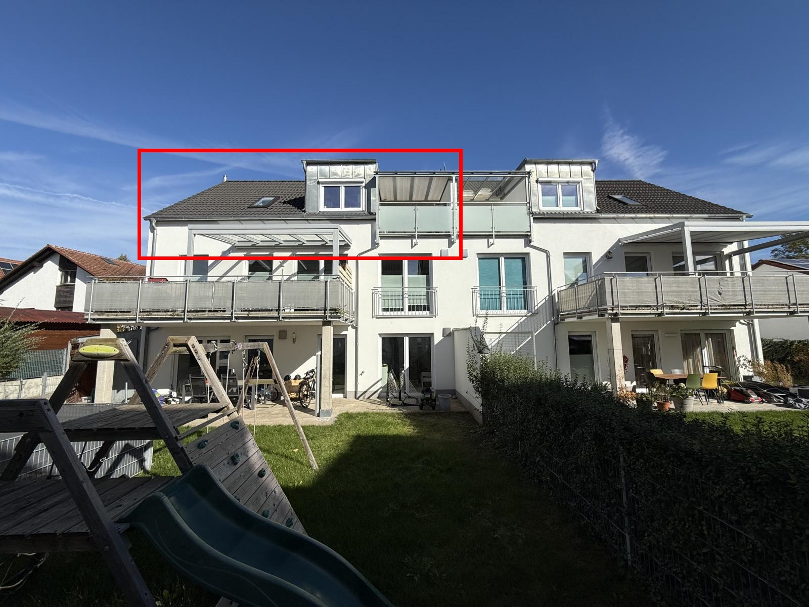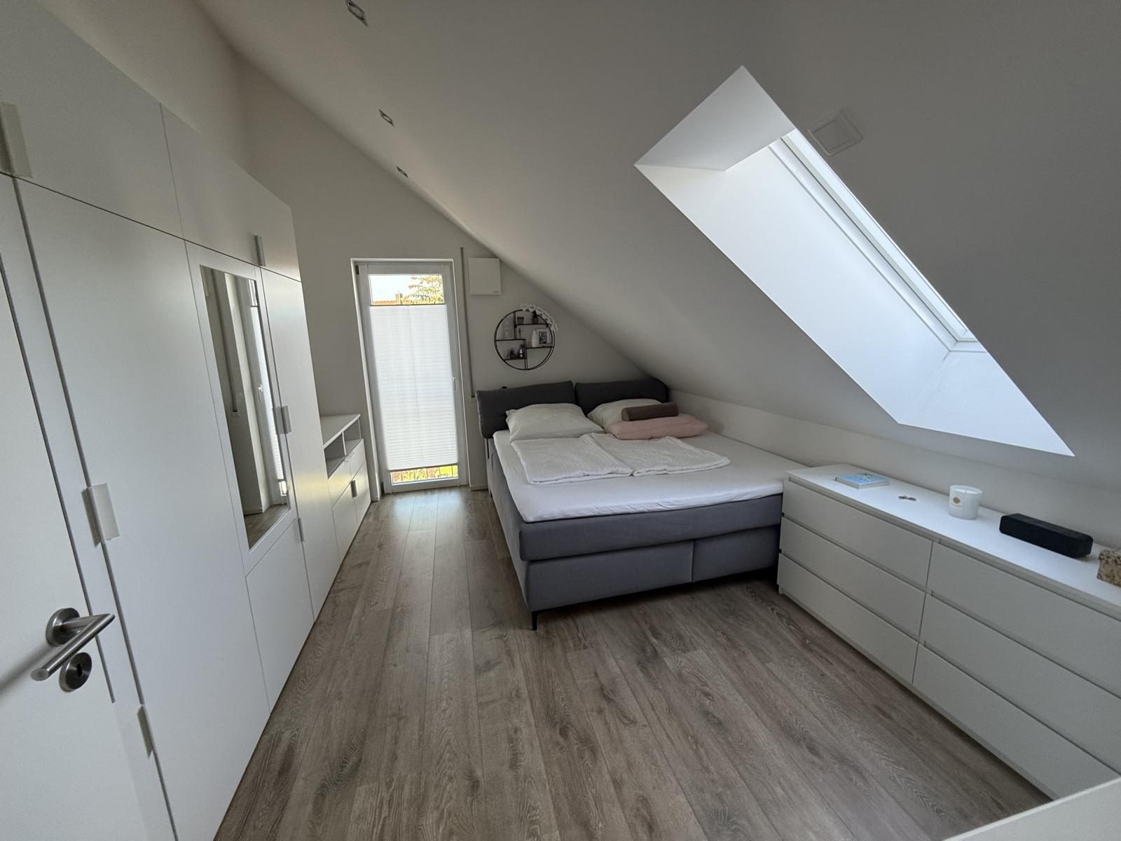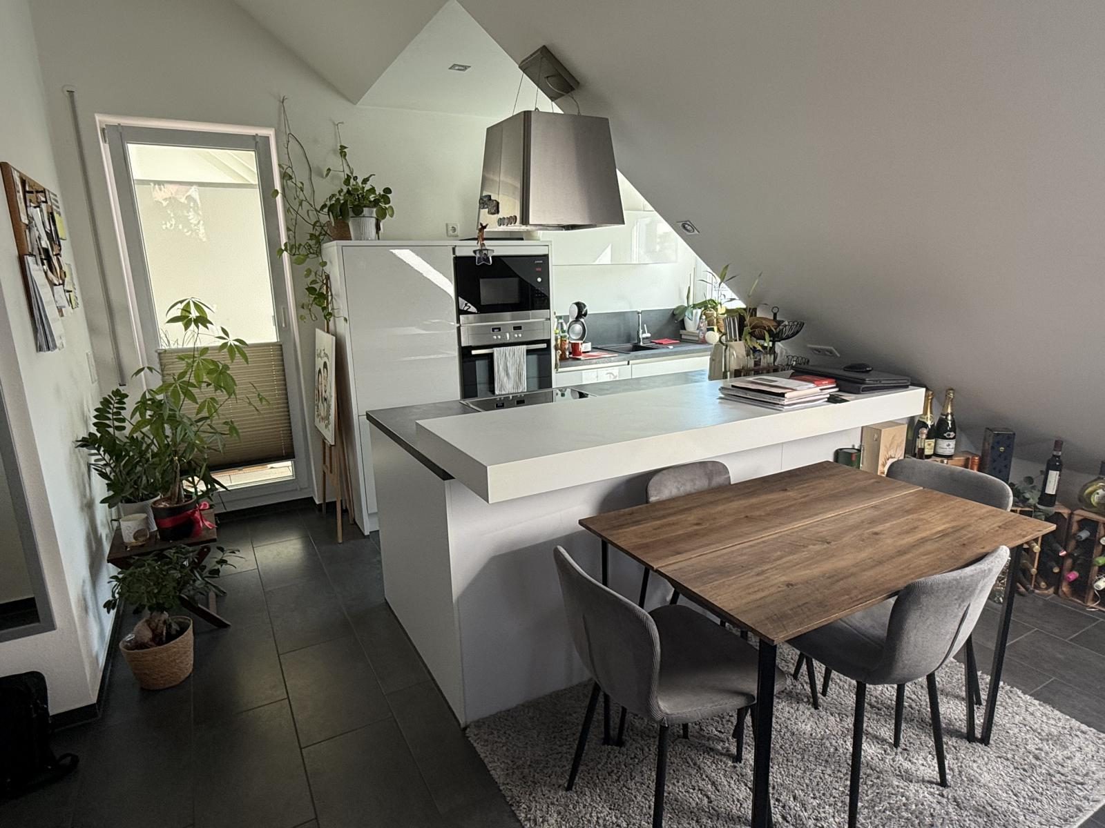 Diese gemütliche 2-Zimmer-Dachgeschosswohnung befindet sich in einem 6-Familienhaus in ruhiger Lage in der Marktgemeinde Kösching. Das moderne Gebäude wurde im Jahre 2017 erbaut. Aufgrund des optimalen Grundrisses bietet die Wohnung Platz für 1-2 Personen. Die Wohnräume sind mit Laminat- und Fliesenboden ausgestattet. Die Wohnung verfügt über ein Wohnzimmer mit Küche und Essbereich, ein Schlafzimmer, eine Diele, ein Bad, eine Abstellkammer und eine Loggia mit Glasdach und Beschattungsanlage. Das helle Bad hat eine begehbare bodengleiche Dusche, eine Badewanne und ist mit modernen Badmöbeln (Waschtisch und Spiegelschrank) eingerichtet. Eine moderne und gepflegte Einbauküche (Mit Induktionsherd, Mikrowelle, Ofen, Spülmaschine, Kühl- und Gefrierkombination) ist Wohnungsbestandteil und im Kaufpreis inbegriffen. Ein Kellerabteil ist der Wohnung als Sondereigentum zugeteilt. Im gemeinschaftlichen Waschkeller gibt es Platz für die Waschmaschine und Trockner. Der Stellplatz (Kaufpreisanteil: 15.000 €) ist in der Tiefgarage direkt neben dem Hauseingangsbereich positioniert.